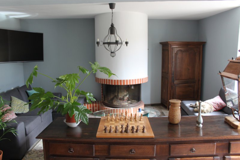 cheminée, télévision grand écran, salle à manger,